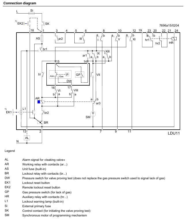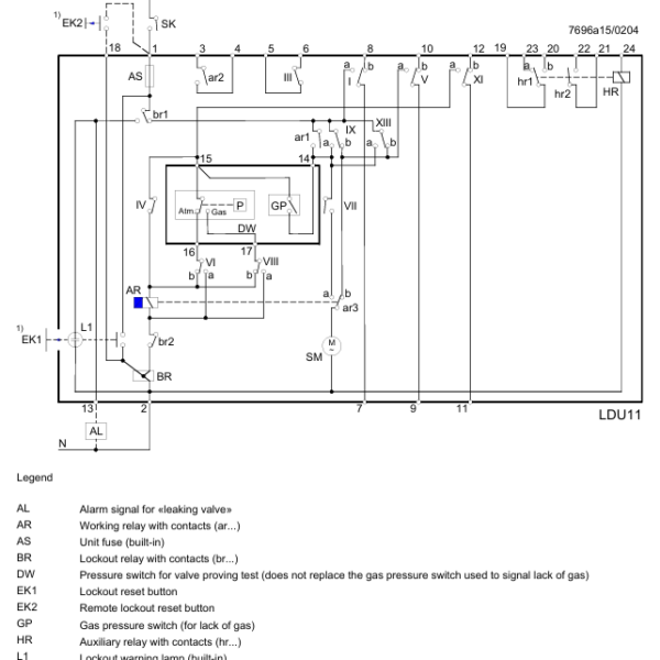 Sistem za proveru ventila LDU11 namenjen je za upotrebu sa zapornim ventilima u sklopu gasnih gorionika i gasnih uređaja. U slučaju nedozvoljenog curenja, sistem sprečava pokretanje gorionika. AC 230V. Punjenje testnog prostora (t3) 5 sekundi. Evakuacija testnog prostora (t4) 2,5 sekunde.