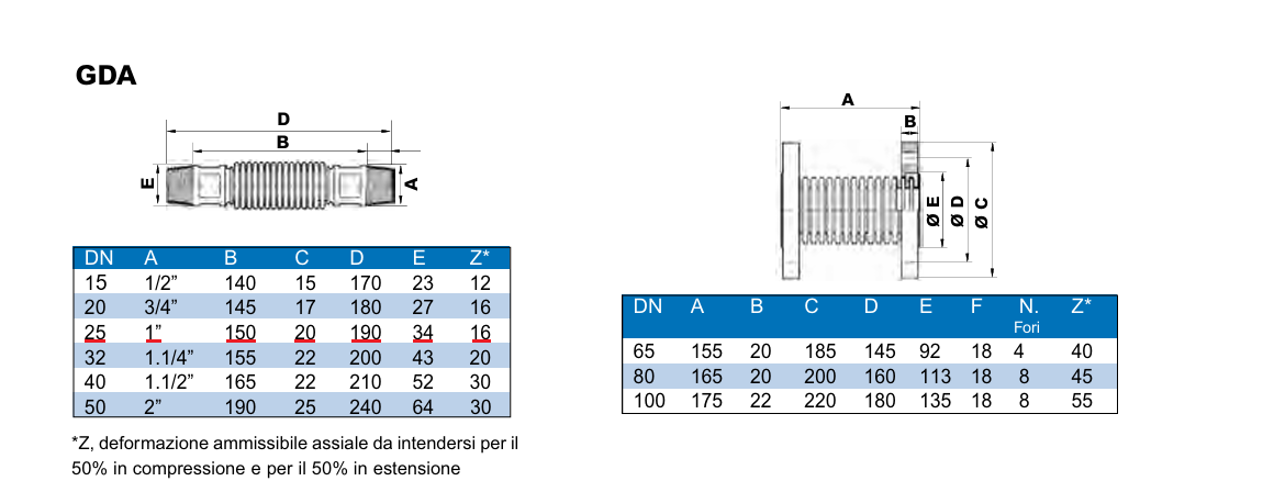 Ime proizvoda: Kompenzator za gas Giuliani Anello GDA25 1″ navojni Pmax=500mbar L=190mm