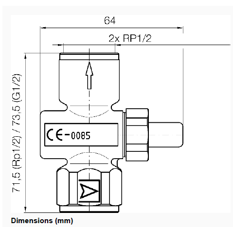 Manometarska slavina dugmasta 1/2″ | Watts PZ131000 L=60mm H=70mm | Afriso 63031 L=71,5mm H=64mm | Weishaupt 454099 L=74mm H=65mm