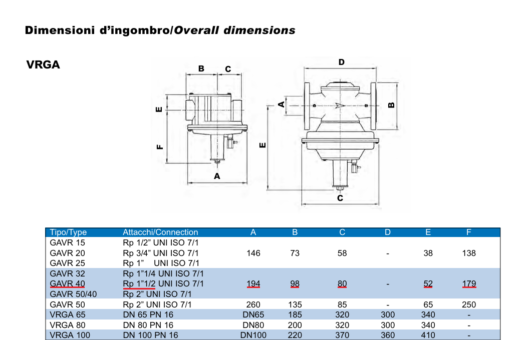 Ime proizvoda: Proporcionalni regulator Giuliani Anello GAVR40 Rp6/4″ navojni Pizl=(2-120)mbar L=178mm