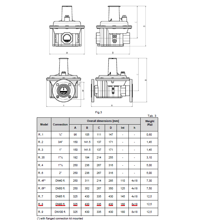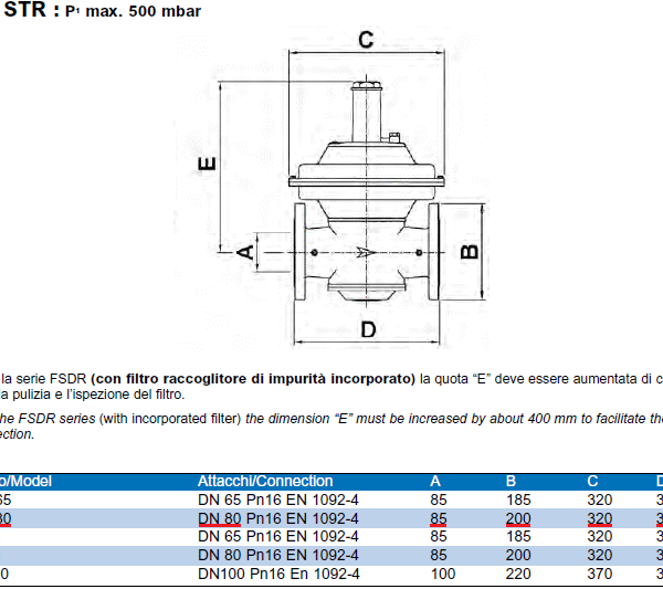 Ime proizvoda: Stabilizator pritiska za gas sa filterom Elektrogas RF8FD DN80 prirubnički Pulmax=500mbar Pizl=(25-70)mbar L=430mm