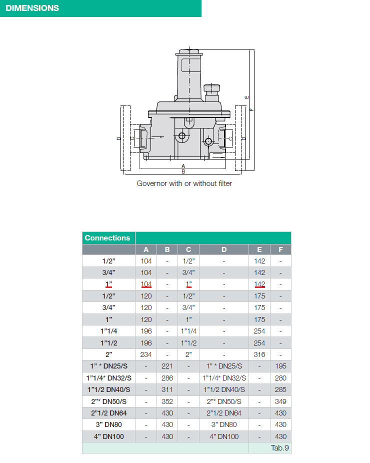 Ime proizvoda: Stabilizator pritiska za gas sa filterom Pietro Fiorentini 31053 1″ navojni Pulmax=1bar Pizl=(10-30)mbar L=104mm